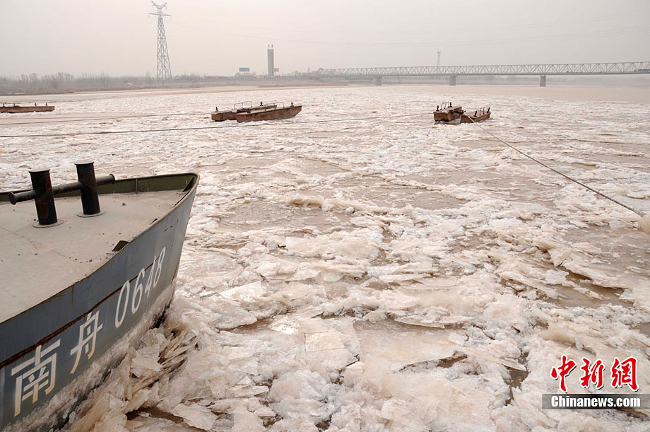 受新一輪強(qiáng)冷空氣影響,黃河下游河段封河迅速發(fā)展。截至12月28日,山東省濟(jì)南市黃河槐蔭河段以下全線流凌,最大流凌密度80%。針對(duì)黃河下游不穩(wěn)定封凍的特點(diǎn),黃河防總要求河南、山東黃河河務(wù)部門加強(qiáng)凌情觀測(cè),全力做好各項(xiàng)防凌工作。張濱 攝 圖片來源:CNSPHOTO