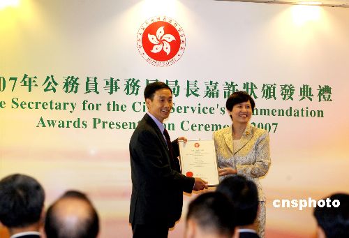 十一月十五日,香港舉行公務(wù)員事務(wù)局局長嘉許狀頒發(fā)典禮,為來自三十八個(gè)局及部門的七十五名優(yōu)秀公務(wù)員頒發(fā)嘉許狀,表揚(yáng)他們的杰出表現(xiàn)。中新社發(fā) 王麗南 攝