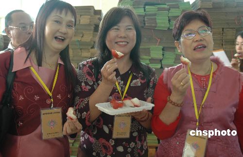 十一月二十九日,臺(tái)南縣十二家媒體記者參觀海口金德豐臺(tái)資農(nóng)場(chǎng)時(shí),品嘗該農(nóng)場(chǎng)出產(chǎn)的蓮霧,稱(chēng)贊其品質(zhì)與臺(tái)灣的一樣鮮甜。中新社發(fā) 王辛莉 攝