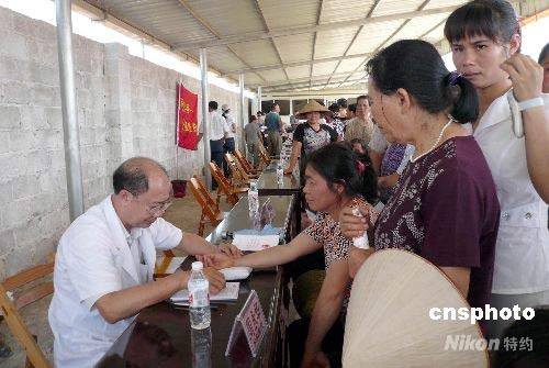 7月19日,國(guó)務(wù)院僑辦、廣西壯族自治區(qū)僑辦2008“僑愛(ài)工程”醫(yī)療義診暨僑法宣傳進(jìn)“僑場(chǎng)”活動(dòng)啟動(dòng)儀式在廣西崇左市扶綏縣渠黎華僑林場(chǎng)舉行。國(guó)務(wù)院僑辦、廣西自治區(qū)僑辦等官員出席儀式,隨即來(lái)自南寧的“送溫暖”義診隊(duì)為歸僑僑眷展開(kāi)展義診活動(dòng)。中新社發(fā) 羅婷 攝