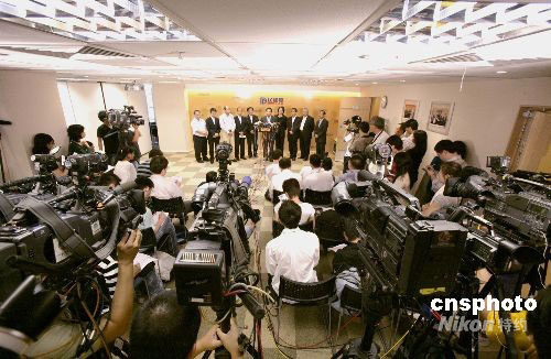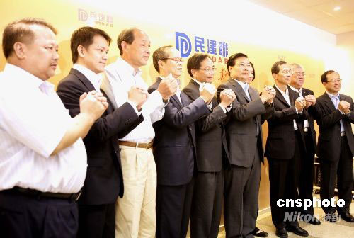 二〇〇八年香港立法會(huì)選舉已圓滿結(jié)束,民建聯(lián)在地區(qū)直選取得九席,功能界別四席,合共取得十三席,圖為民建聯(lián)當(dāng)選人九月八日上午與媒體見面。中新社發(fā) 張勤 攝