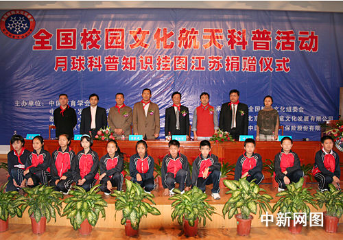 10月底,“嫦娥一號(hào)”探月衛(wèi)星將發(fā)射升空。為了迎接“嫦娥一號(hào)”的發(fā)射,10月15日,在江蘇省昆山市,中國人民財(cái)產(chǎn)保險(xiǎn)股份有限公司向江蘇省中小學(xué)生捐贈(zèng)了月球科普掛圖2000套。這套掛圖是目前國內(nèi)首次以生動(dòng)、活潑的卡通形象“航天娃娃”向中小學(xué)生介紹月球地貌、月球資源、月球開發(fā)、月球基地建設(shè)等月球科普知識(shí)。據(jù)了解,這次捐贈(zèng)的主要目的是把太空和月球知識(shí)送到中小學(xué)生中,以激發(fā)他們對(duì)航天知識(shí)的興趣,提高他們的科學(xué)素養(yǎng),培養(yǎng)開拓創(chuàng)新和刻苦鉆研的科學(xué)精神。劉明明 攝