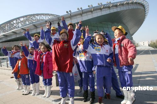 十一月十七日,來自北京回龍觀新龍小學的農(nóng)民工子女,興致勃勃地參觀了北京理工大學體育館暨08年奧運排球比賽場館。中新社發(fā) 張勤 攝