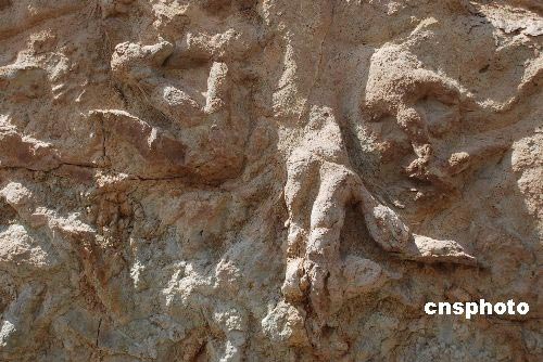 中德古生物學(xué)家4月10日宣布,日前在中國新疆吐魯番盆地鄯善地區(qū)侏羅紀(jì)地層中首次發(fā)現(xiàn)一批恐龍足跡化石。目前已發(fā)現(xiàn)恐龍足印150余個(gè),分布范圍長達(dá)100余米,這批恐龍生活在距今約1.65億年前的侏羅紀(jì)中期,身長約5至6米,屬于群居小型肉食類恐龍。 至少包括兩種類型,均屬于肉食性的獸腳類恐龍。 此次鄯善地區(qū)恐龍足跡化石的發(fā)現(xiàn),在新疆尚屬首次。它填補(bǔ)了新疆地區(qū)恐龍足跡研究的空白。中新社發(fā) 緱燁 閆軍 攝