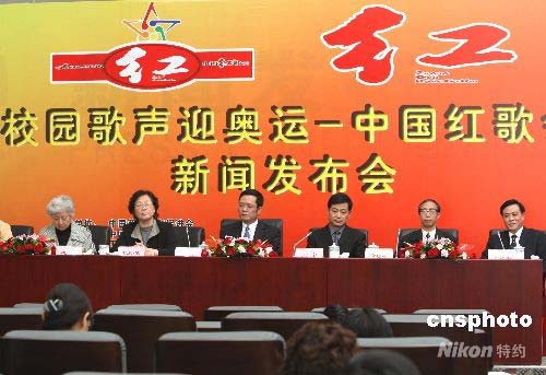 4月29日,“校園歌聲迎奧運(yùn)——中國紅歌會”新聞發(fā)布會在北京宣布,從當(dāng)日起在全國各高校選拔迎奧運(yùn)“紅歌會”歌手。該活動由中國藝術(shù)教育促進(jìn)會、中國新聞社、江西電視臺傾情打造, 參賽者演唱的“紅歌”包括歷屆奧運(yùn)歌曲、北京奧組委推薦歌曲、經(jīng)典優(yōu)秀歌曲和學(xué)生自創(chuàng)的校園歌曲,希望藉此使更多青年學(xué)生用歌唱的形式激發(fā)凝聚力、向心力和創(chuàng)新精神,掀起中國高校迎奧運(yùn)的熱潮。中新社發(fā) 趙振清 攝