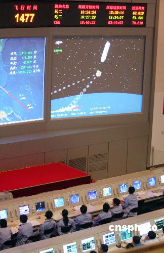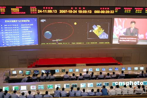 圖:北京航天飛控中心監(jiān)控“嫦娥一號”發(fā)射(2)