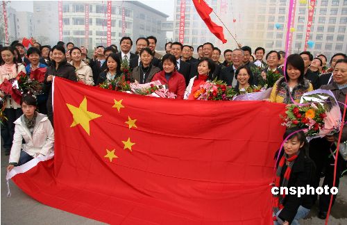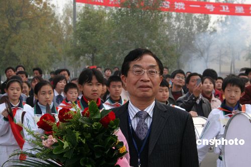 十一月七日下午,中國(guó)首顆月球探測(cè)衛(wèi)星“嫦娥一號(hào)”研制單位——中國(guó)空間技術(shù)研究院舉行盛大歡慶活動(dòng),慶祝“嫦娥一號(hào)”衛(wèi)星成功進(jìn)入工作軌道,歡迎該院“嫦娥一號(hào)”衛(wèi)星試驗(yàn)隊(duì)凱旋。中新社發(fā) 孫自法 攝