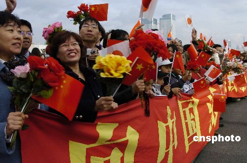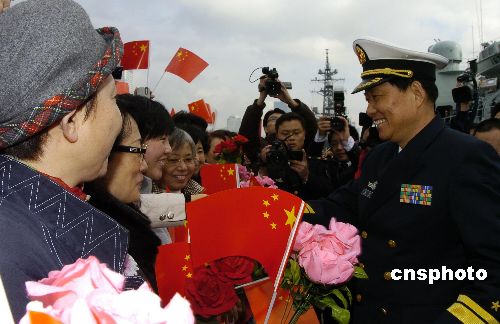 12月1日上午“深圳”號(hào)結(jié)束對(duì)日本的友好訪問返航歸國時(shí),六百余名在日華人華僑留學(xué)生及駐日使館人員趕往碼頭送行。中新社發(fā) 朱沿華 攝