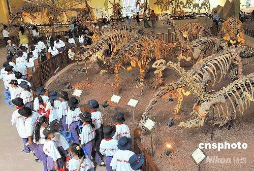 4月18日上午,世界最大恐龍遺址——世界恐龍谷在云南祿豐縣開園,重現(xiàn)了一個失落的侏羅紀時代。世界恐龍谷主題公園規(guī)劃面積4平方公里,匯集了60具恐龍骨骼化石,堪稱世界奇觀。景區(qū)由“恐龍遺址科考觀光區(qū)”和“侏羅紀世界旅游區(qū)”兩大部分組成。目前,占地1平方公里的一期核心景區(qū)向游人開放。圖為游客正在世界恐龍谷參觀。中新社發(fā) 袁云 攝