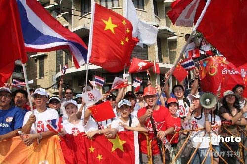 組圖:曼谷奧運(yùn)圣火傳遞現(xiàn)場(chǎng)目擊(4)