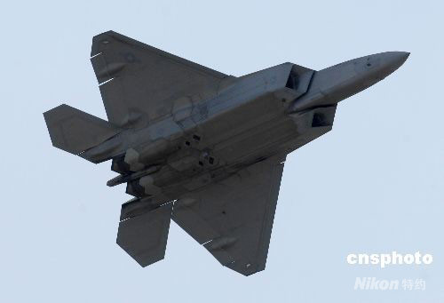 圖為全球最先進(jìn)的戰(zhàn)機(jī)F-22進(jìn)行飛行表演。中新社發(fā) 張煒 攝