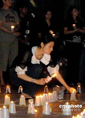 圖:洛杉磯中國留學(xué)生燭光追思地震遇難者(2)