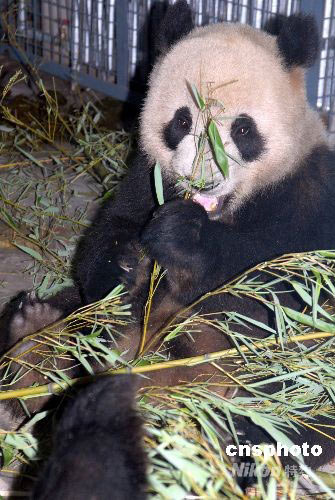 5月24日,來自四川臥龍的8只大熊貓平安抵達(dá)北京動(dòng)物園,開始新的生活。此次進(jìn)京的8只奧運(yùn)大熊貓,是今年3月21日啟動(dòng)的“2008四川臥龍大熊貓奧運(yùn)北京行”投票評(píng)選活動(dòng)中,由廣大網(wǎng)民從16只大熊貓里選出來的。這8只熊貓,雌雄各半,現(xiàn)在的年齡都在1歲9個(gè)月之間,屬亞成體,正是最活潑可愛的年華。 中新社發(fā) 羅小韻 攝