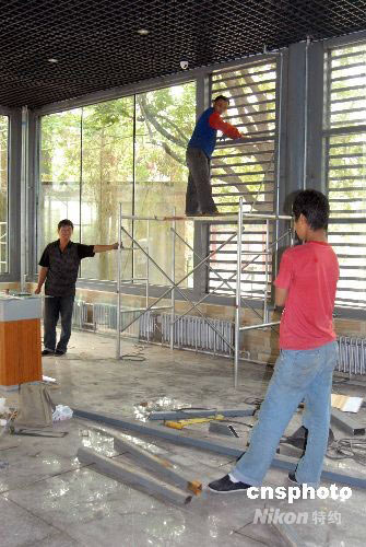 圖:正在裝修的奧運(yùn)大熊貓展示大廳(2)