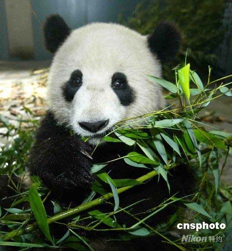 圖為大熊貓在進(jìn)食。 中新社發(fā) 富田 攝