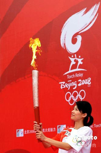 圖:跳水冠軍李娜擔任圣火合肥傳遞首棒