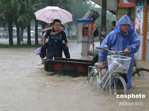 5月30日,廣西柳州暴雨如注,降雨量達(dá)100毫米以上,市內(nèi)多處低洼地段發(fā)生嚴(yán)重內(nèi)澇,市民相互幫助,從容面對(duì)。據(jù)悉,強(qiáng)降雨自25日襲擊廣西大部分地區(qū)以來(lái),引發(fā)嚴(yán)重的山洪災(zāi)害,目前已造成4人死亡,118000人受災(zāi)。中新社發(fā) 蒙鳴明 攝
