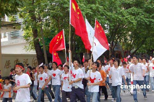 圖:廣西南寧民眾熱情迎接奧運(yùn)圣火(7)