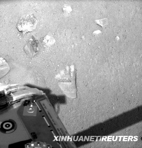 “鳳凰”號(hào)探測(cè)項(xiàng)目經(jīng)理戴維·斯潘塞6月1日說,機(jī)械臂與火星的第一次接觸為之后的采集土壤和向其他科學(xué)儀器傳送土壤樣品做好了準(zhǔn)備。由于機(jī)械臂形狀特殊,其在火星留下的“第一痕”類似于人類腳印。 新華社/路透