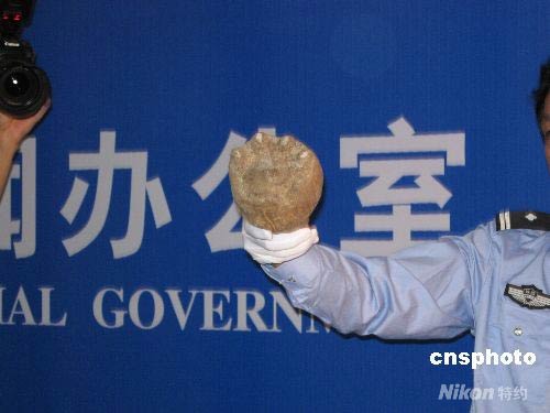 圖為該省警方在發(fā)布會上展示在周正龍家查出的周正龍用于拍攝野生華南虎足跡照片所使用的木制模具。中新社發(fā) 趙景榮 攝