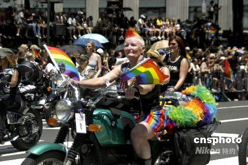 6月29日,同性戀大游行在紐約曼哈頓第五大道舉行。參加者盡情展示奇裝異服以及想象力,勁歌熱舞,希望引起社會對同性戀的更多關(guān)注。中新社發(fā) 魏晞 攝