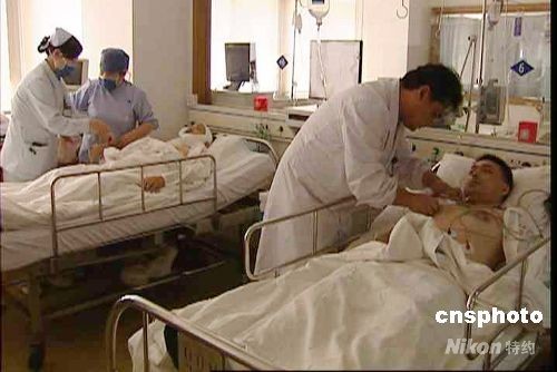 7月1日上午9時許,一名外地來滬歹徒持刀闖入上海閘北公安分局,連續(xù)捅傷多名民警和一名保安,隨即被民警當(dāng)場擒獲。上海閘北公安分局受傷民警和保安被送往長征醫(yī)院和北站醫(yī)院搶救。目前,已有五名受傷民警犧牲,其他傷員正在全力救治中。中新社發(fā) 宣克炅 攝