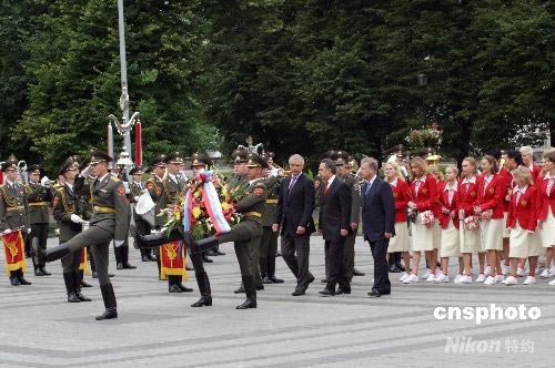 圖:俄羅斯代表團(tuán)向無名烈士墓敬獻(xiàn)花籃