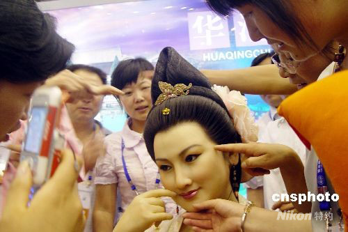 八月二十六日,仿真硅像“楊貴妃”吸引中外客商。當(dāng)日,第五屆中國(guó)河南國(guó)際投資貿(mào)易洽談會(huì)在鄭州揭幕,來(lái)自美國(guó)、英國(guó)、德國(guó)、韓國(guó)、日本等七十多個(gè)國(guó)家和地區(qū)的一萬(wàn)兩千余客商與會(huì)。中新社發(fā) 李志全 攝