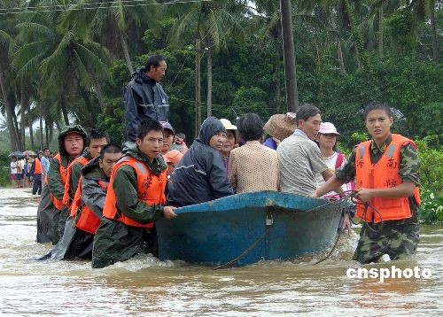 海南文昌遭受連續(xù)三天的暴雨襲擊,全縣多處遇險(xiǎn),其中兩名村民遇難。文昌部隊(duì)官兵全部出動(dòng),協(xié)助當(dāng)?shù)卣购榫葹?zāi),轉(zhuǎn)移群眾,搬運(yùn)物資。中新社發(fā) 蔣第二 攝