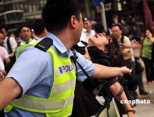 游行中部分人情緒激動,亦有人途中暈倒。中新社發(fā) 譚達(dá)明 攝