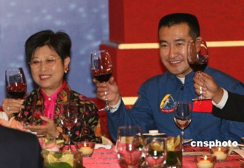 十二月五日晚,香港特區(qū)政府在香港會議展覽中心舉行晚宴,歡迎“神舟七號”載人航天飛行代表團一行。中新社發(fā) 武仲林 攝