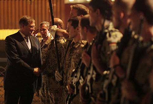 近日,德國國防部長弗朗茨·約瑟夫·容為參加歐盟領(lǐng)導(dǎo)的打擊海盜行動的德國官兵送行,此次行動德國派出了卡爾斯魯赫(Karlsruhe)號護(hù)衛(wèi)艦參與。