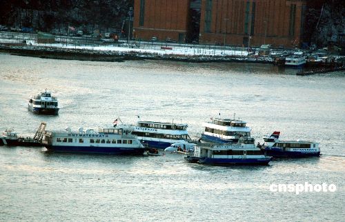 1月15日,在美國紐約的哈德遜河上,救援人員對墜河飛機上的乘客實施營救。中新社發(fā) 魏晞 攝