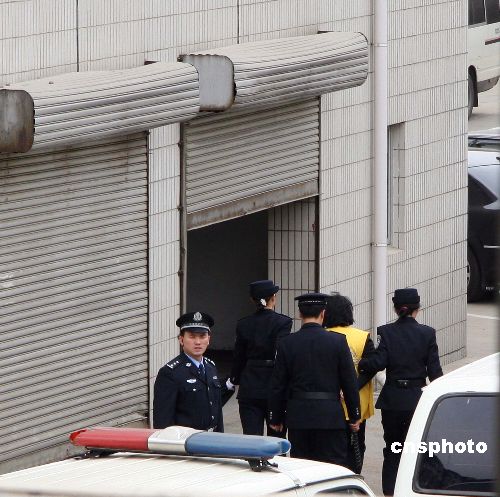 圖:田文華被法警從后門押入法院