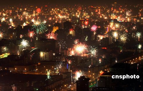 圖:北京在絢麗的煙花映襯下成為一片歡樂的海洋