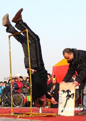 2009年1月31日,農(nóng)歷正月初六,北京蓮花池公園廟會(huì)上,各路中華奇人精彩的絕技表演讓游人贊嘆不已,每天舉行的兩場(chǎng)表演成為此次廟會(huì)一大亮點(diǎn)。