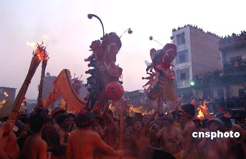 2月5日,廣西南寧賓陽縣舉行當地傳統(tǒng)的“炮龍節(jié)”,整個縣城一百多條巨龍狂舞,震耳欲聾的鞭炮響徹一晚,四十多萬人參與狂歡。被譽為“中國狂歡節(jié)”的賓陽縣炮龍節(jié)是中國國家級非物質文化遺產,節(jié)日當天主要街道上群龍勁舞,鞭炮齊鳴。每條炮龍長達三四十米,被視為新年神物,以“龍牌”、鑼鼓、八音開路,花籃火把相隨,眾大漢赤膊上陣,沿街游舞。臨街的商家住戶和游客把一串串鞭炮丟往龍身上炸龍,以祈求來年風調雨順,富貴平安。