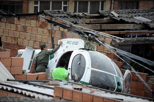 圖:哥倫比亞一警用直升機墜入民房(2)