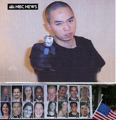 這張美國全國廣播公司2007年4月18日晚間新聞的電視截圖顯示,弗吉尼亞理工大學(xué)槍擊案兇手、韓國籍學(xué)生趙承熙擺出持槍射擊的姿勢。趙承熙16日在作案間隙曾向美國全國廣播公司寄過一個(gè)包裹,里面包括錄像帶和照片,錄像中有不少攻擊和謾罵“富人”的內(nèi)容。趙承熙在弗吉尼亞州一所大學(xué)兩個(gè)多小時(shí)內(nèi)兩度開槍行兇,造成33人死亡,20多人受傷,兇案震驚全球。