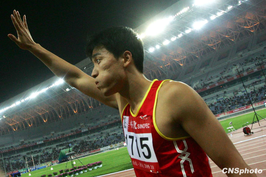 10月24日晚,全運(yùn)會(huì)110米欄預(yù)賽在濟(jì)南奧體中心舉行,“飛人”劉翔以13秒75成績輕松晉級(jí)決賽。來源:中國新聞網(wǎng)