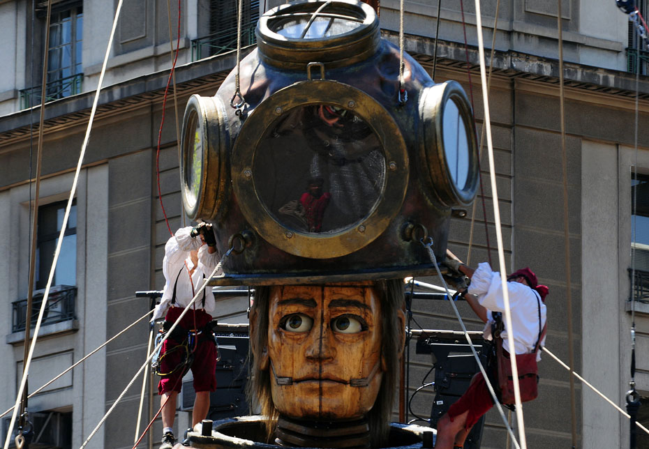 近日,智利首都圣地亞哥街頭,法國一劇團(tuán)攜巨型提線木偶“小巨人”上街表演,它惟妙惟肖的表情和逼真的神態(tài)引得周圍觀眾的陣陣掌聲。圖片來源:中國新聞網(wǎng)