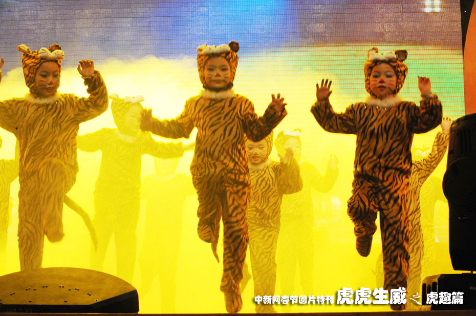 1月26日,在安徽省亳州供電公司舉辦的《和諧快樂》春節(jié)聯(lián)歡會上,來自舞蹈學(xué)校的小朋友表演的舞蹈“虎娃迎春”,受到觀眾的歡迎。中新社發(fā) 張延林 攝