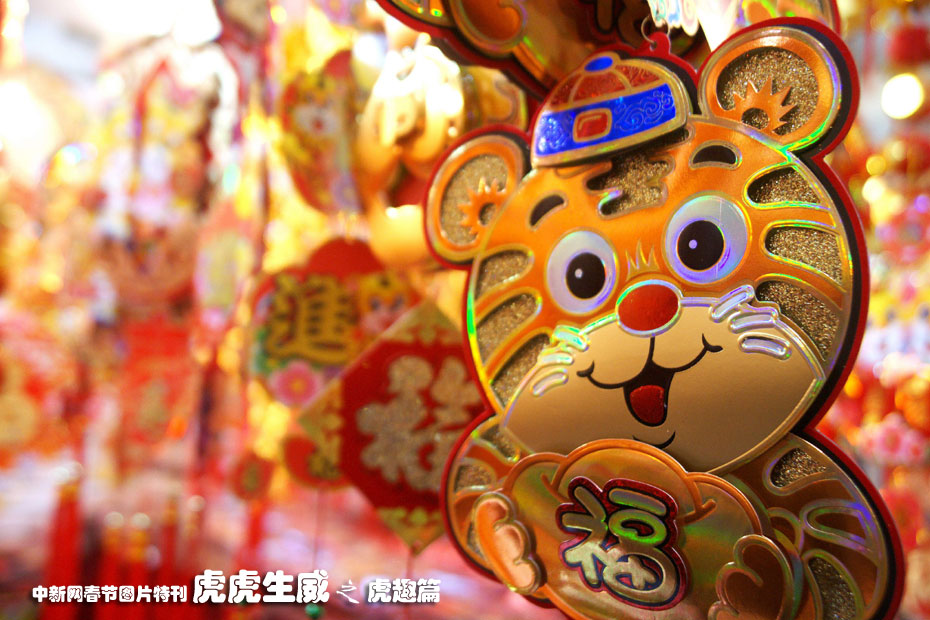 虎年臨近,各地有關(guān)“虎”的喜慶裝飾品熱銷。各種紅色布老虎掛飾、紅中國結(jié)營造出了紅紅火火的過年氣氛。中新社發(fā) 梁銘 攝