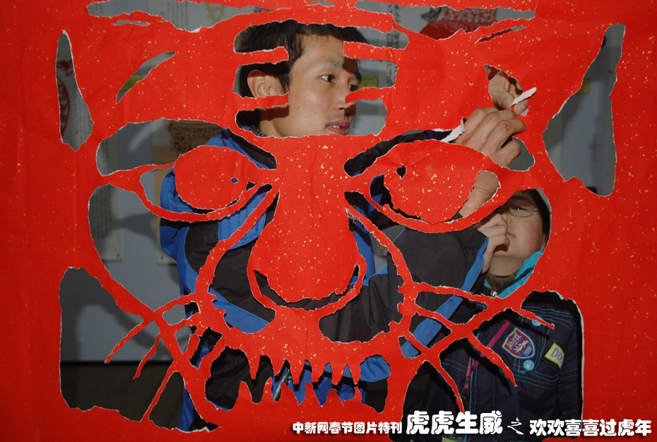 12月20日,來自安徽壽縣的民間剪紙大師方軍化作客江蘇揚州中國剪紙博物館表演撕紙絕技,現場徒手撕出的近百種形態(tài)各異的紙 “老虎”,讓觀眾嘖嘖稱奇。