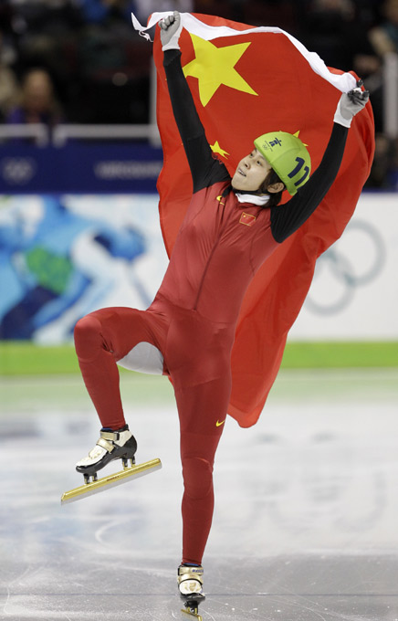 2010年溫哥華冬奧會短道速滑女子500米決賽北京時(shí)間2月18日上午11時(shí)許舉行,中國選手王濛獲得冠軍,為中國代表團(tuán)再添一枚金牌。圖片來源:中國新聞網(wǎng)