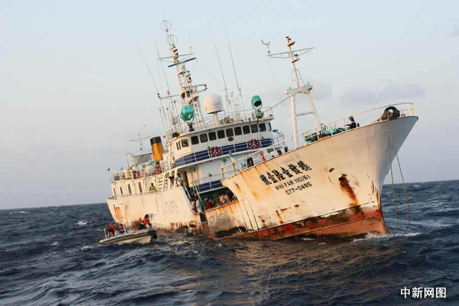 09年4月在西印度洋遭索馬里海盜挾持的臺(tái)灣遠(yuǎn)洋漁船“穩(wěn)發(fā)161號(hào)”,歷經(jīng)各方營救,終于在遭挾持10個(gè)多月后,包括船長顏勝男等共28人返回高雄港。圖片來源:中國新聞網(wǎng)