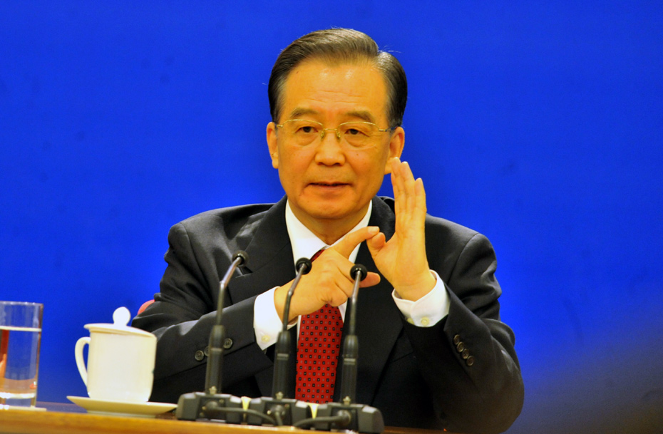 3月14日上午,國務院總理溫家寶在人民大會堂三樓金色大廳與采訪十一屆全國人大三次會議的中外記者見面并回答記者提出的問題。中新社記者 賈國榮 攝 圖片來源:中國新聞網(wǎng)