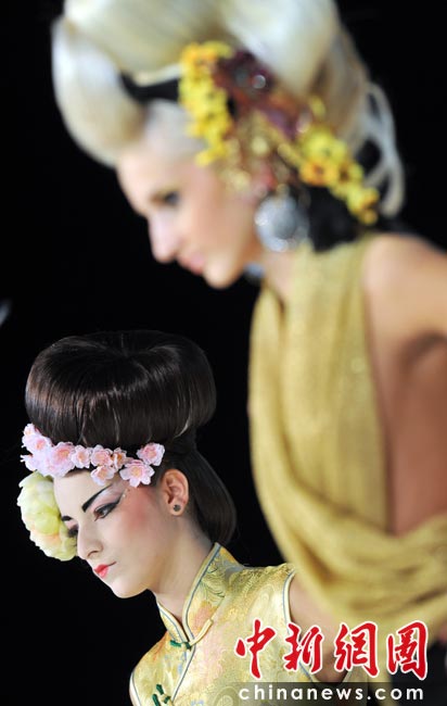 近日,第九屆“水晶天使”國(guó)際發(fā)型藝術(shù)節(jié)開幕,設(shè)計(jì)師紛紛秀出自己設(shè)計(jì)的新款發(fā)型。圖片來(lái)源:中國(guó)新聞網(wǎng)