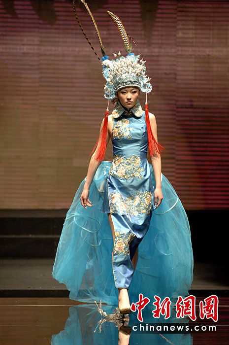 4月20日晚,首屆海西國際時(shí)裝周在福建石獅閉幕,本屆時(shí)裝周吸引了來自海峽兩岸的紡織服裝界企業(yè)家和知名服裝設(shè)計(jì)師。期間舉辦了12場(chǎng)時(shí)裝品牌和設(shè)計(jì)師作品動(dòng)態(tài)發(fā)布會(huì)。圖為模特展示古今潮流結(jié)合的服裝。王東明 攝