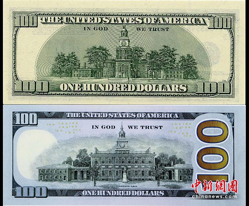 4月21日,美國財(cái)政部和美聯(lián)儲(chǔ)共同發(fā)布新版100美元面值的紙幣票樣。此次發(fā)行新版百元美鈔旨在防范假鈔,同時(shí),老版美元仍將繼續(xù)流通。圖片來源:中國新聞網(wǎng)